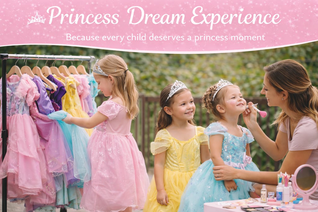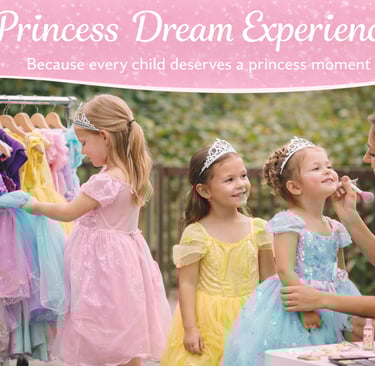 The Princess Dream Experience is a magical and unforgettable party designed to make every child feel like royalty. This enchanting experience combines creativity, imagination, and gentle beauty moments, all in a fun and age-appropriate way.